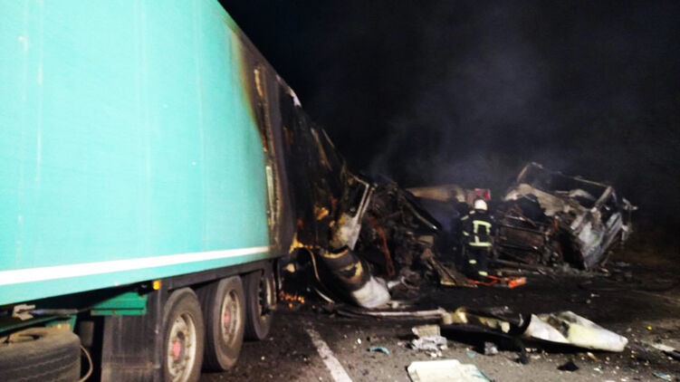 Под Николаевом ночью две фуры сгорели в ДТП, погибли двое мужчин. Фото