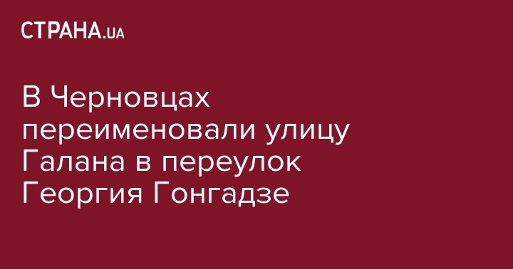 В городском совете Черновцов приняли решение переименовать улицу и переулок названный в честь писателя Ярослава Галана в улицу и переулок имени журналиста Георгия Гонгадзе. Об этом сообщает УНИАН.