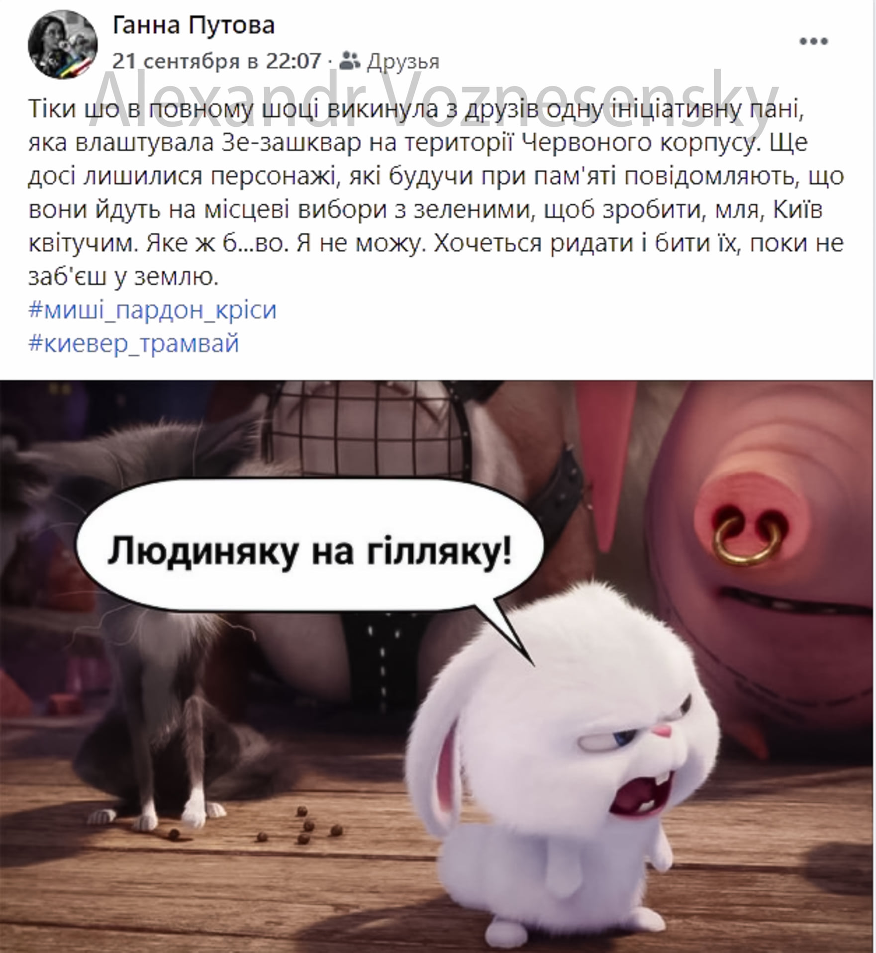 Также Вознесенский опубликовал скриншот ее поста о том, как после выборов она написала, что жаль наблюдать откат и что скоро нужно будет входить на Майдан, хотя "скорее всего Майдана не будет, а будет полноценная война и скоро".