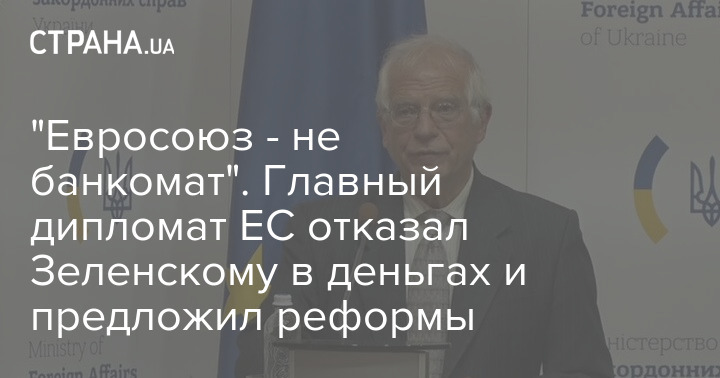 Глава дипломатии Евросоюза Жозеп Боррель после визита в Киев и встречи с президентом Владимиром Зеленским заявил, что Евросоюз - не банкомат и не благотворительная организация.