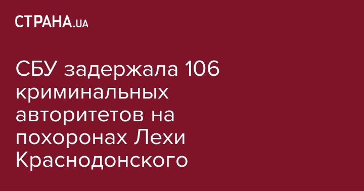 В районе Святогорска задержаны 106 человек из числа криминальных авторитетов, которые прибыли на похороны "вора в законе" "Лехи Краснодонского". По данным СБУ целью задержание была проверка законности пребывания на территории Украины граждан России, Молдовы и других стран