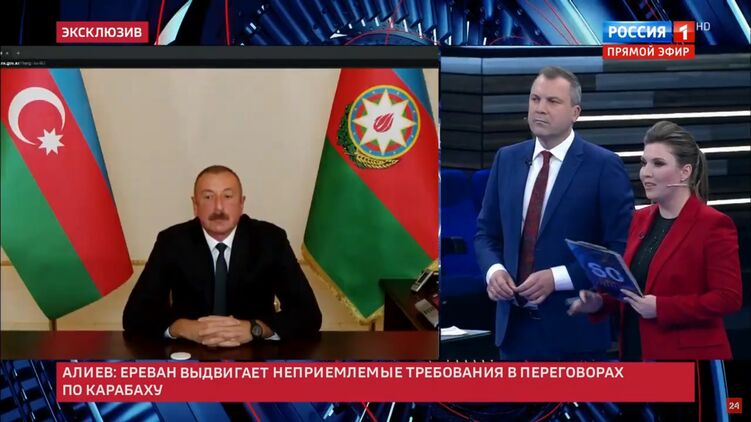 Президент Азербайджана Ильхам Алиев и премьер-министр Армении Никол Пашинян впервые появились вместе на телеэкране в одной программе. Это произошло в политическом ток-шоу "60 минут" на телеканале "Россия 1".
