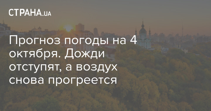 В воскресенье, 4 октября, на больше части территории Украины, кроме Закарпатья, осадков не ожидается, а воздух днем ​​прогреется до +24.