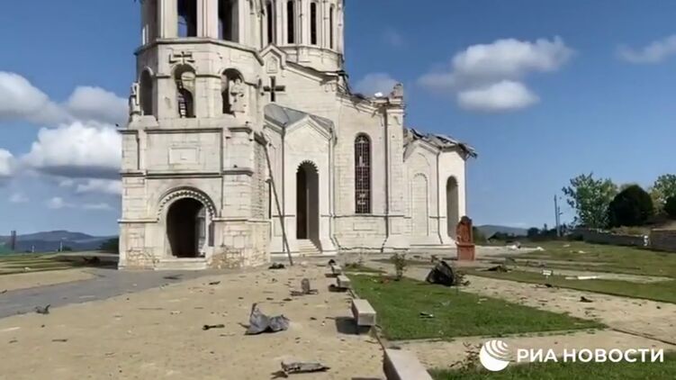 "Корреспондент РИА осмотрел попавший под обстрел храм в карабахском Шуши. Его настоятель и местные военные утверждают, что видели на месте беспилотник или самолёт, который нанес удар", - сказано в сообщении.