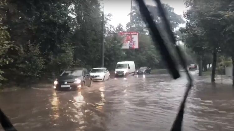 Ливневая канализация не справилась с объемом воды. Пешеходы по некоторым улицам передвигались вброд. Больше всего подтопило улицы Калиновскую и Сечевых Стрельцов.