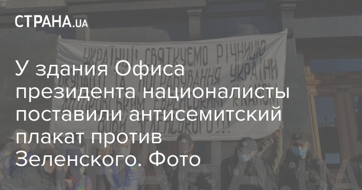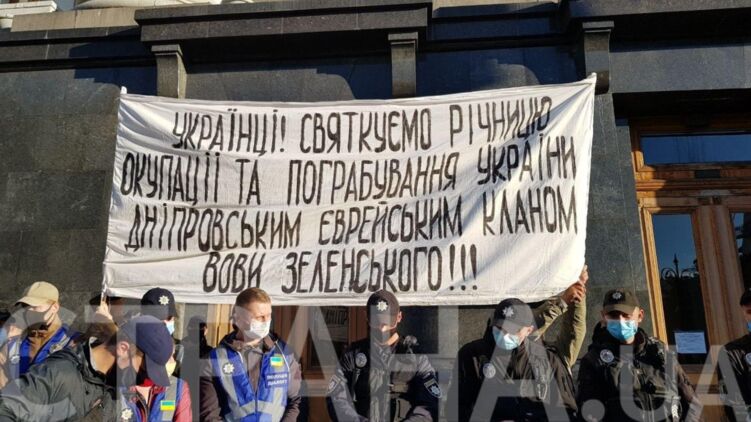 В среду, 14 октября, в День защитника Украины и День УПА в Киеве националисты провели Марш УПА. В самом его конце представители "Правого сектора", "Нацкорпуса" и "Свободы" около здания Офиса президента поставили антисемитский плакат против главы государства Владимира Зеленского.