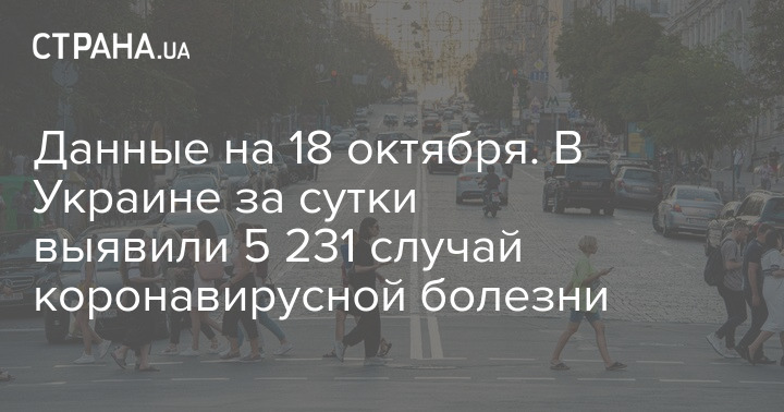 В Украине по состоянию на утро воскресенья, 18 октября, число лабораторно подтвержденных случаев коронавирусной болезни Covid-19 увеличилось на 5 231.