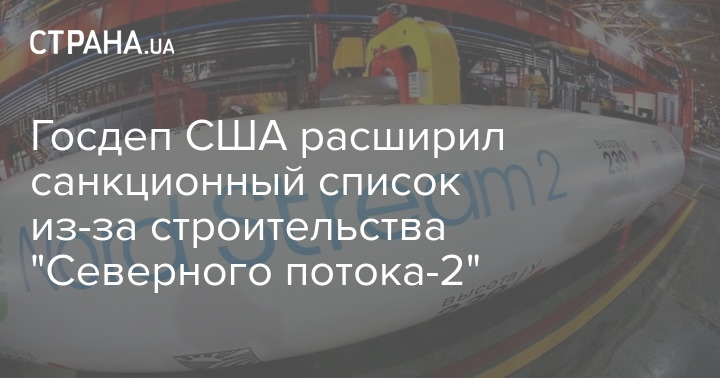 Госдеп США расширил санкции относительно "Северного потока-2" для препятствования окончанию строительства российского газопровода. Новая порция ограничений нацелена на компании, которые будут предоставлять услуги или финансирование для судов, работающих на строительстве "Северного потока-2", пишет The Wall Street Journal.