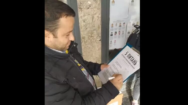 Координатор "Опоры" в Хмельницкой области Андрей Попик выложил в Facebook видео, как он принимает участие в опросе Зеленского семь раз.