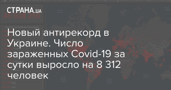По состоянию на утро пятницы, 30 октября, в Украине подтвердилось еще 8 312 новых случаев заражения коронавирусом. Общее число заболевших таким образом достигло отметки в 378 729 человек.