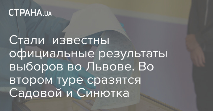 Стали известны официальные результаты выборов во Львове. Во втором туре сразятся Садовой и Синютка