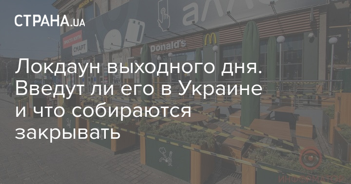 Самым рабочим вариантом, по информации "Страны", сегодня является "карантин выходного дня". Его, по нашим данным, всерьез обсуждают на Банковой и уже комментируют официально. Ударить эта новация может главным образом по заведениям общепита.