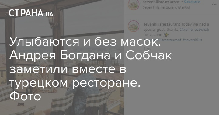 Улыбаются и без масок. Андрея Богдана и Собчак заметили вместе в турецком ресторане. Фото