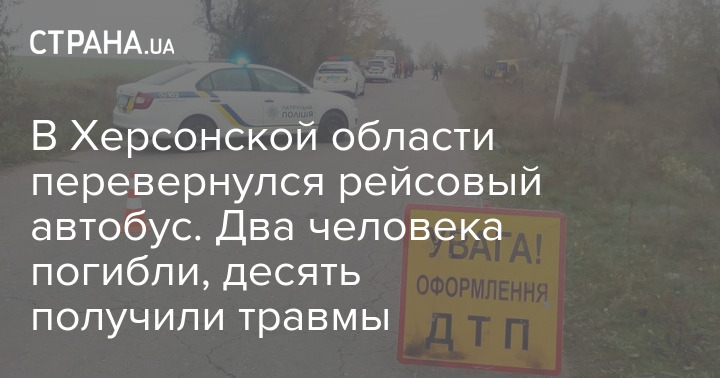 В Херсонской области перевернулся рейсовый автобус. Два человека погибли, десять получили травмы