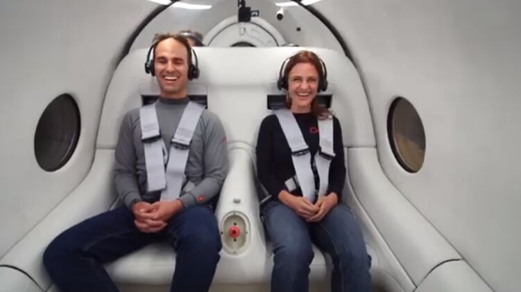 Вакуумный поезд Hyperloop перевез капсулу с двумя первыми пассажирами. Скриншот из видео