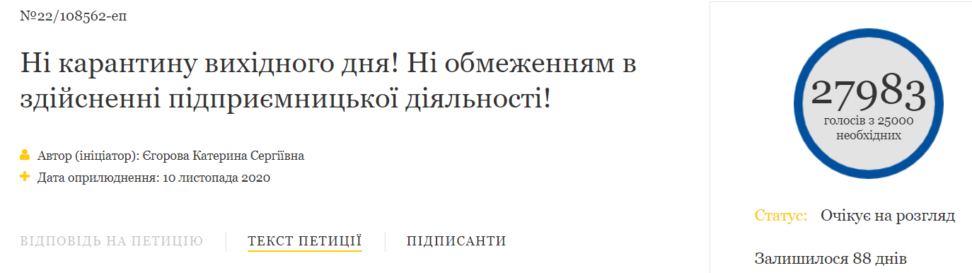 14:31 Петиция президенту об отмене карантина набрала необходимые 25 тысяч голосов.