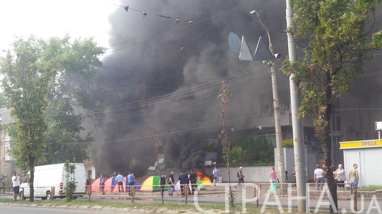 Сегодня, 4 сентября, в Киеве 15 неизвестных в балаклавах попытались захватить и поджечь студию телеканала "Интер". В данный момент пожарные тушат здание, проводят эвакуацию сотрудников. Часть работников редакции все еще находятся на верхних этажах и крыше здания. На месте работают медики скорой помощи.
