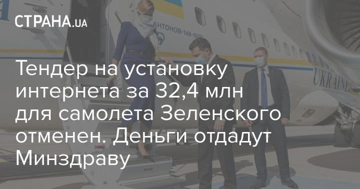 Тендер на установку интернета за 32,4 млн для самолета Зеленского отменен. Деньги отдадут Минздраву
