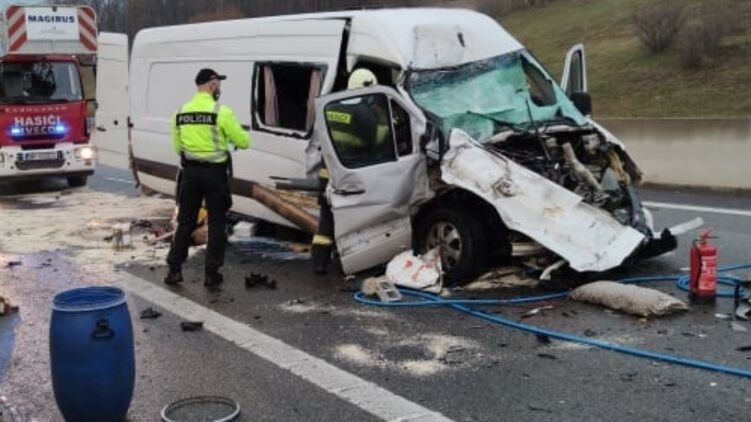 В Словакии микроавтобус из Украины столкнулся с автоцистерной. Фото: facebook.com/KRPZNR