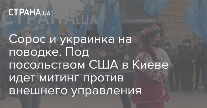 Сорос и украинка на поводке. Под посольством США в Киеве идет митинг против внешнего управления