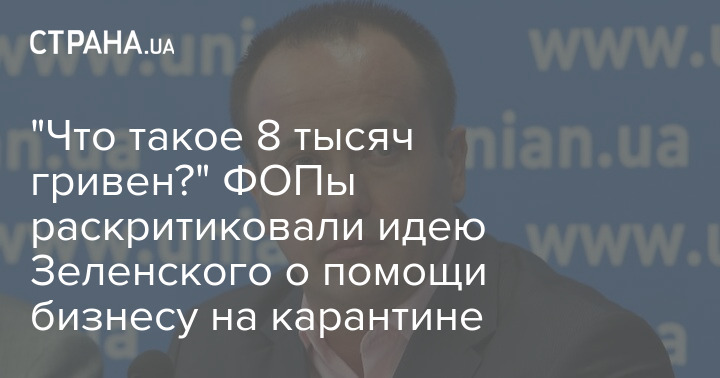 Глава движения "SaveФОП" Сергей Доротич считает, что 8 тысяч гривен компенсации для ФОПов в период карантина, о которой ранее заявил президент Владимир Зеленский, не помогут бизнесу выжить в условиях жестких коронавирусных ограничений.