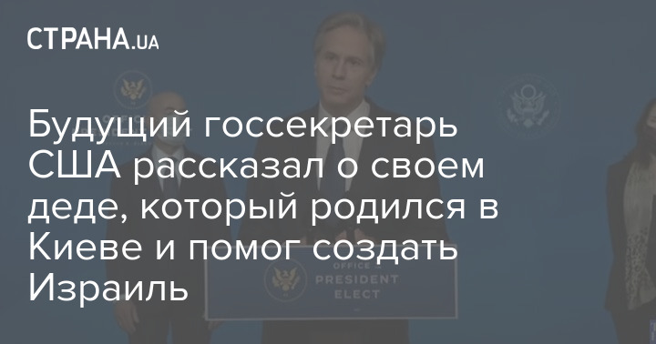 Дед американского политика Энтони Блинкена, которого новоизбранный глава Белого дома Джо Байден планирует выдвинуть кандидатом на должность госсекретаря США, родился в Киеве и бежал из Украины, опасаясь погромов. Об этом рассказал сам 58-летний Блинкен во время выступления членов команды Байдена в Уилмингтоне в штате Дэлавер, передает The Hill.