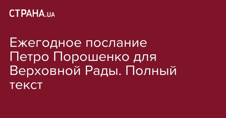 Ежегодное послание Петро Порошенко для Верховной Рады. Полный текст