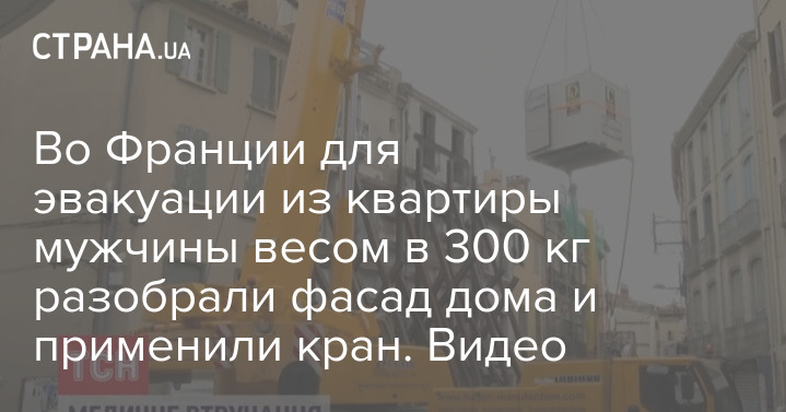 Во Франции для эвакуации из квартиры мужчины весом в 300 кг разобрали фасад дома и применили кран. Видео