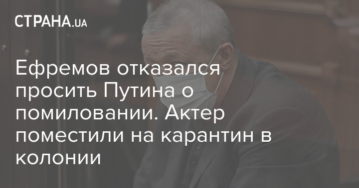 Ефремов отказался просить Путина о помиловании. Актер поместили на карантин в колонии