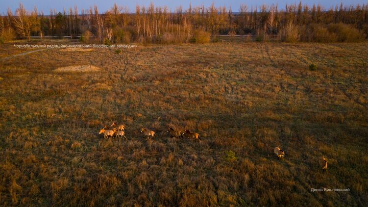 Сотрудники Чернобыльского заповедника показали фото лошадей Пржевальского с высоты птичьего полета.