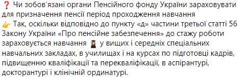 Однако отмечается, что время обучения в таких учреждениях после 1 января 2004 года (если лицо не работало) не засчитывается в страховой стаж, поскольку студенты не подлежат общеобязательному государственному пенсионному страхованию.