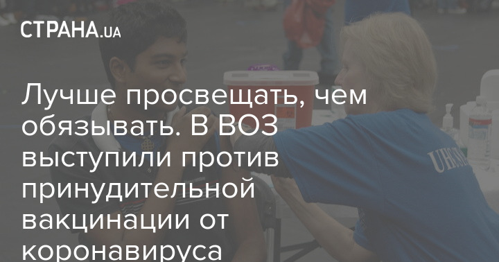 Директор отдела Всемирной организации здравоохранения (ВОЗ) по иммунизации Кэтрин О'Брайан высказалась по поводу принудительной вакцинации от коронавируса. По ее мнению, убеждать людей в полезности вакцинации было бы куда продуктивнее, чем заставлять население прививаться в обязательном порядке.