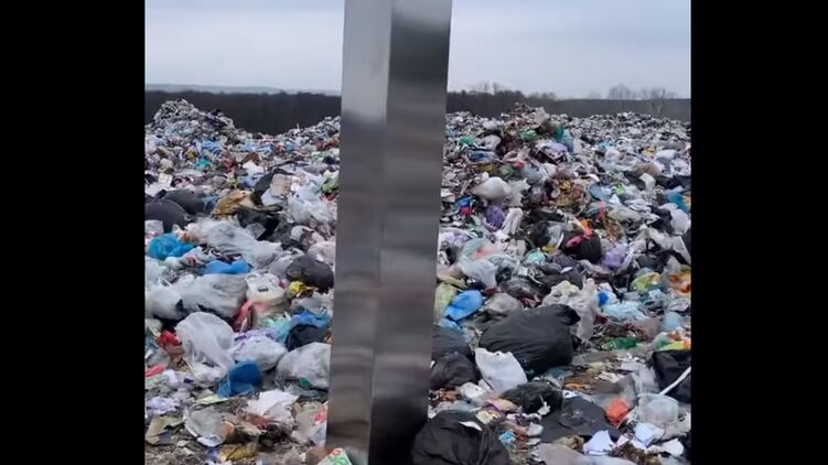 Таинственный монолит появился на полтавской свалке. Фото: скриншот из видео