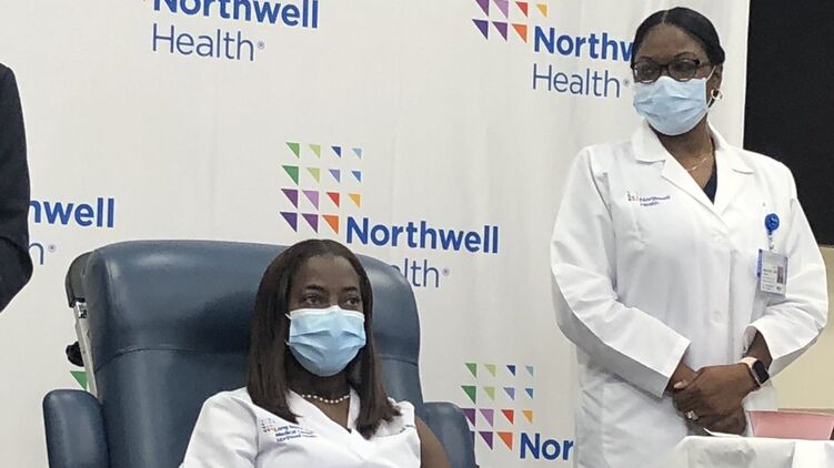 Сандра Линдси работает медсестрой в Еврейском медицинском центре Лонг-Айленда. Прививку от COVID-19 ей сделала доктор Мишель Честер из отдела здравоохранения того же медучреждения.