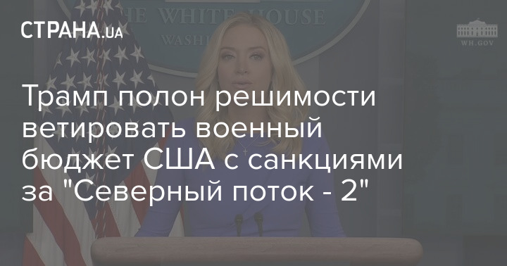 Пресс-секретарь президента США Кейли Макэнани заявила, что глава Белого дома Дональд Трамп все еще планирует попытаться наложить вето на законопроект об оборонном бюджете на 2021 финансовый год, недавно одобренный Конгрессом.