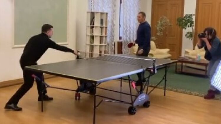 Президент Украины Владимир Зеленский сыграл в пинг-понг со своим первым помощником Сергеем Шефиром, пока их снимал фотограф одного из "известных американских изданий".