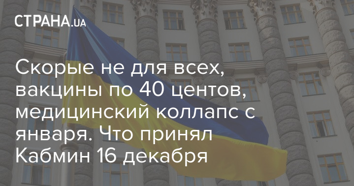 Скорые не для всех, вакцины по 40 центов, медицинский коллапс с января. Что принял Кабмин 16 декабря