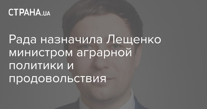 Верховная Рада назначила директора Госгеокадастра Романа Лещенко министром аграрной политики и продовольствия. "За" проголосовали 242 народных депутатов.