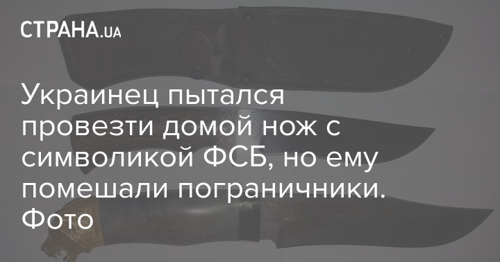 "А 47-летний украинец, возвращаясь из РФ домой на автомобиле "Мерседес" российской регистрации, тоже прихватил с собой запрещенные вещи. В его машине погранично-таможенная группа нашла два ножа с длиной лезвия 15 см и 17 см. На одном из них была гравировка с изображением символики ФСБ РФ", - говорится в сообщении.