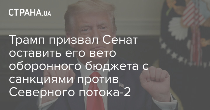 Трамп призвал Сенат оставить его вето оборонного бюджета с санкциями против Северного потока-2