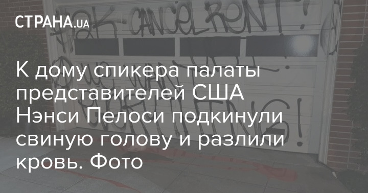 Дом спикера палаты представителей США Нэнси Пелоси исписали граффити и подкинули ей свиную голову.