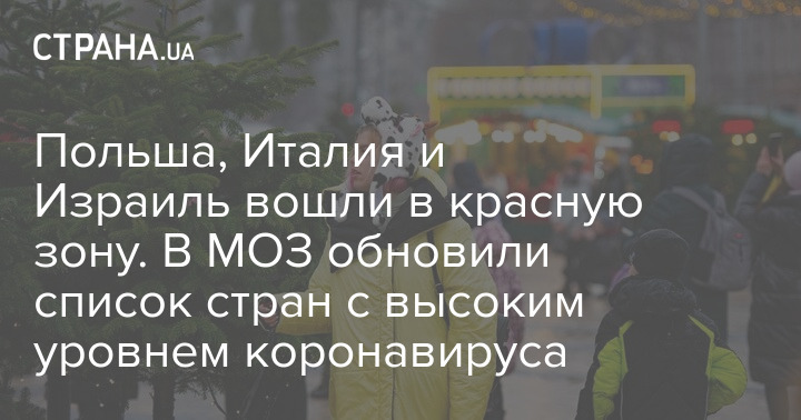 Польша, Италия и Израиль вошли в красную зону. В МОЗ обновили список стран с высоким уровнем коронавируса