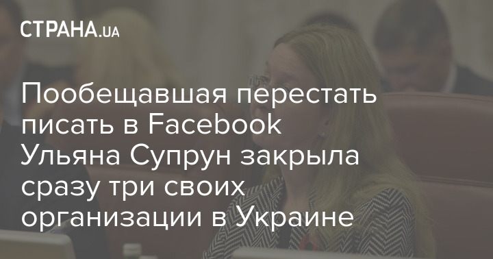 Бывшая исполняющая обязанности министра здравоохранения Украины Ульяна Супрун, которая недавно пообещала больше не писать постов на Facebook, в декабре вместе с мужем закрыла три принадлежащие им общественные организации.