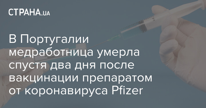 В Португалии медработница умерла спустя два дня после вакцинации препаратом от коронавируса Pfizer
