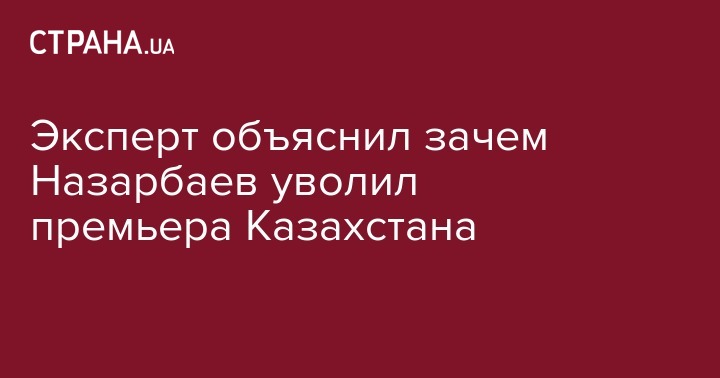 Эксперт объяснил зачем Назарбаев уволил премьера Казахстана