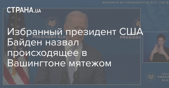 Избранный президент США Джо Байден прокомментировал протесты у здания Капитолия в Вашингтоне. Он назвал их мятежом.