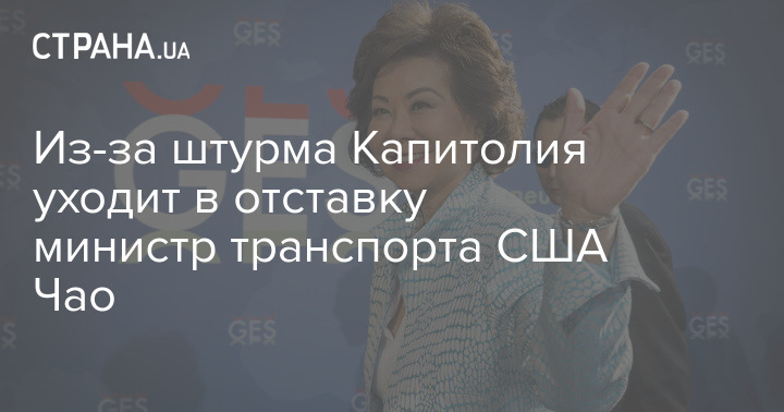 Министр транспорта США Элейн Чао подала прошение об отставке. Поводом для такого решения стал произошедший в ночь на 7 января захват здания Конгресса в Вашингтоне сторонниками Дональда Трампа. Чиновница официально указала эту причину в своем заявлении об уходе.