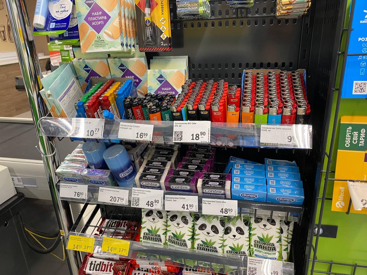 В супермаркетах сети "АТБ" точно такая же ситуация. Полки с запрещенными к продаже товарами также ограждены лентой, полка с презервативами не исключение, но взяв товар из категории запрещенных и пройдя с ним на кассу, кассир нам его отпускает без всяких трудностей.
