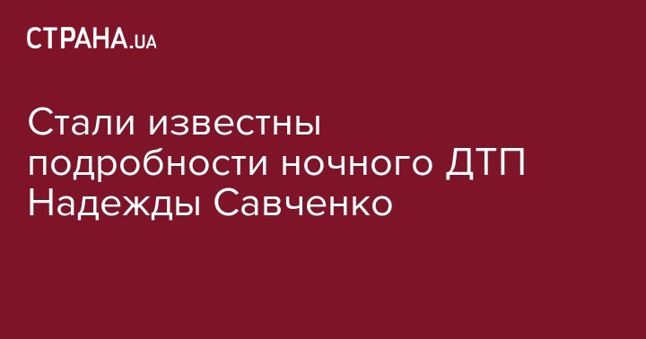Сестра нардепа Надежды Савченко рассказала о подробностях ночного ДТП, в которое попал автомобиль, где она находилась в качестве пассажира. Об этом Вера Савченко написала в Facebook.