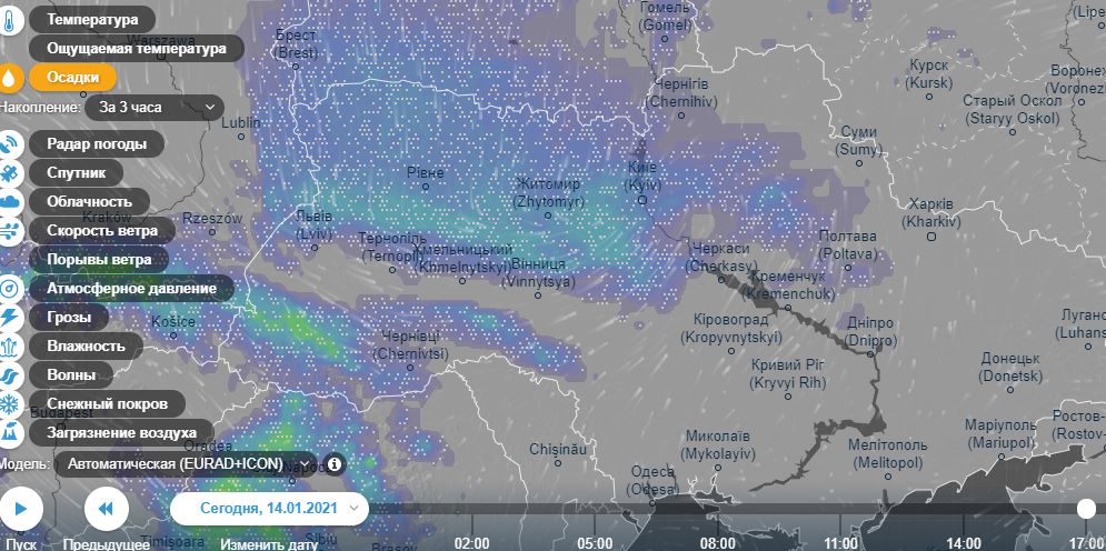 Погода в Киеве и в Украине сегодня, 14 января 2021